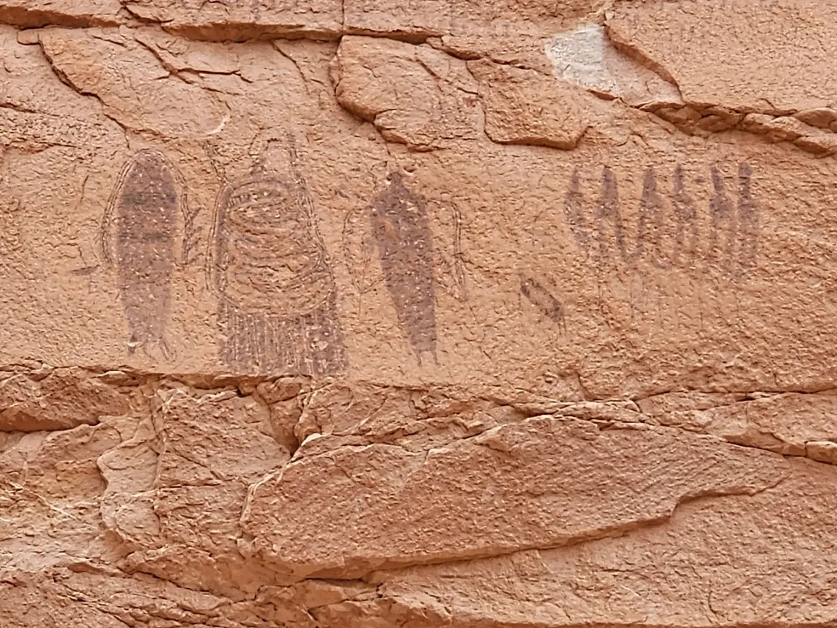 The petroglyphs are a pit-stop on the way to the Canyonlands. It features a captivating landscape shaped by the Colorado River. Over eons, the river carved deep canyons, creating a maze of towering cliffs and mesas.