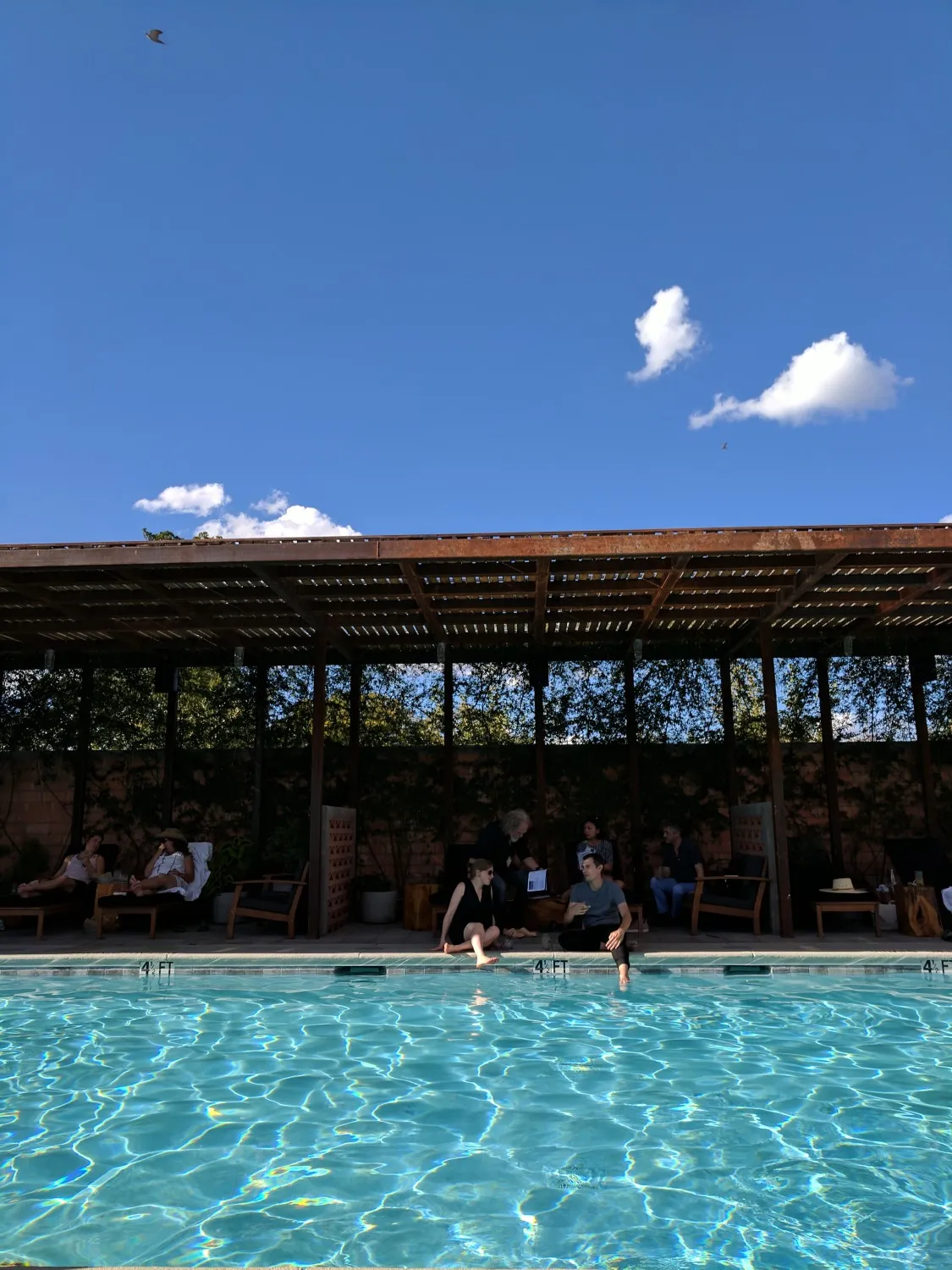 Later, I find my way to a free hotel swimming pool to cool down. I while away a couple of hours splashing around.